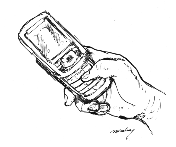 The challenge with drawing something like this was not so much the complexity of the finger positioning, but more about the weight of the fingers. When you think about it, a hand only lightly holds onto a phone. It rests in your hand rather than being tightly gripped, unlike the way you might hold a full coffee cup or a pen. So the illustration or linework had to convey a certain lightness of touch. Not sure if I achieved that – may have to pursue this angle a bit more.