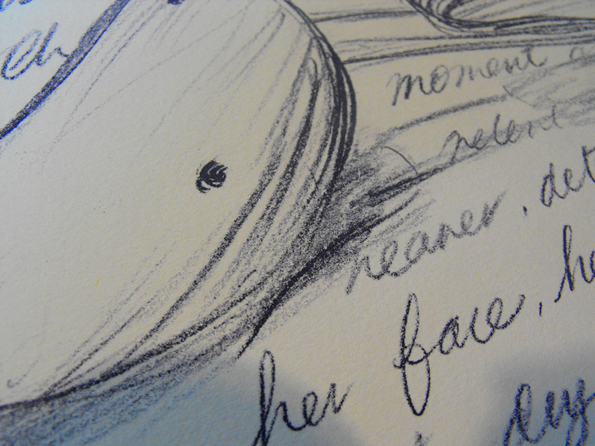 I was quite happy in the end. My goal was to lead the eye around the page through the dark blue shadows under the waves and rock, so that your eyes are moving in a continuous spiral.