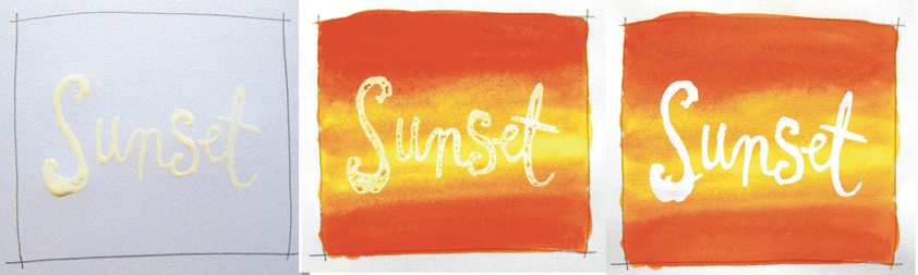 • if you can layer more masking fluid on top of watercolours without removing the underlayer; and